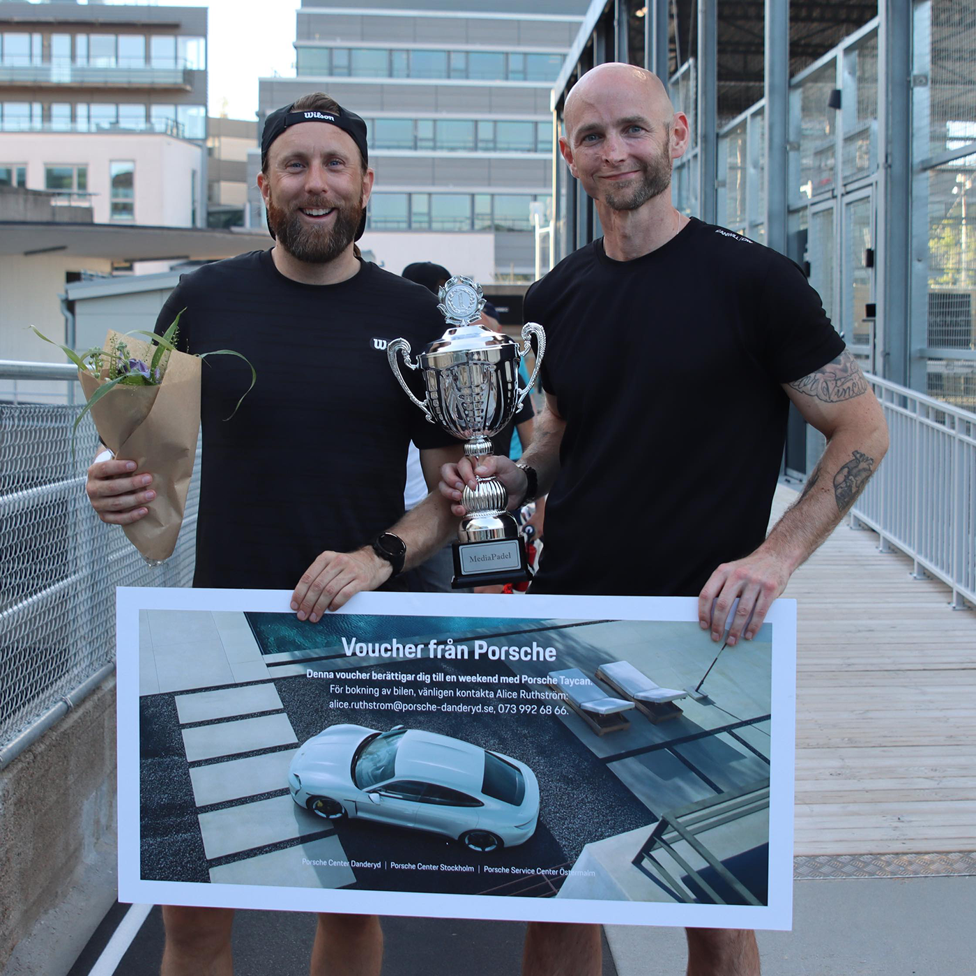 Efter en mycket spännande match mellan Homage och Bump stod det till sist klart att Mediasveriges bästa padelpar 2021 är Calle Francke och Jonas Linder från laget Homage! För vinnarna väntar nu en hotellnatt på Ellery Beach House samt det fartfyllda priset som sponsras av Porsche – varsin Porsche Taycan under en hel weekend! Stort grattis!